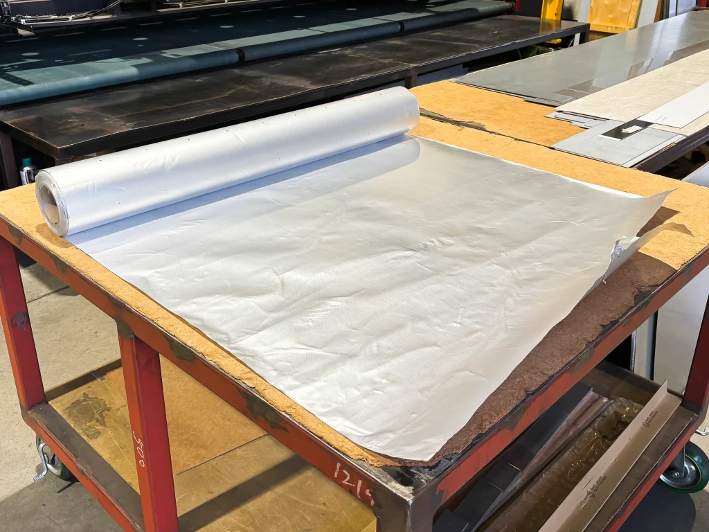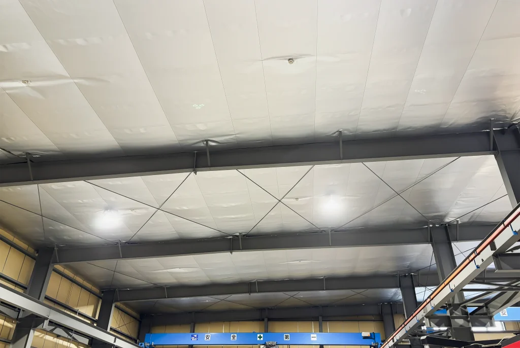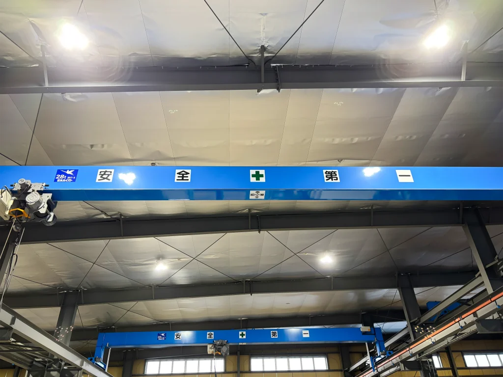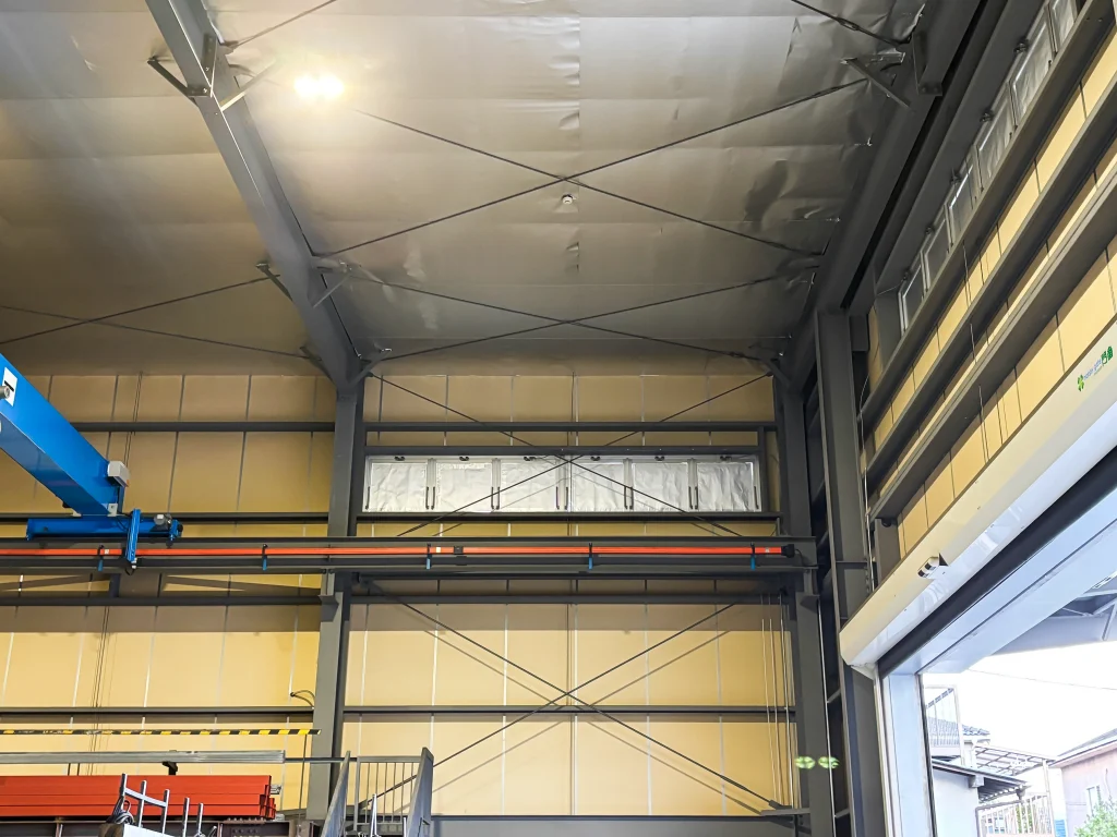そこで、猛暑対策として、工場の天井および窓に「遮熱シート」を設置しました。